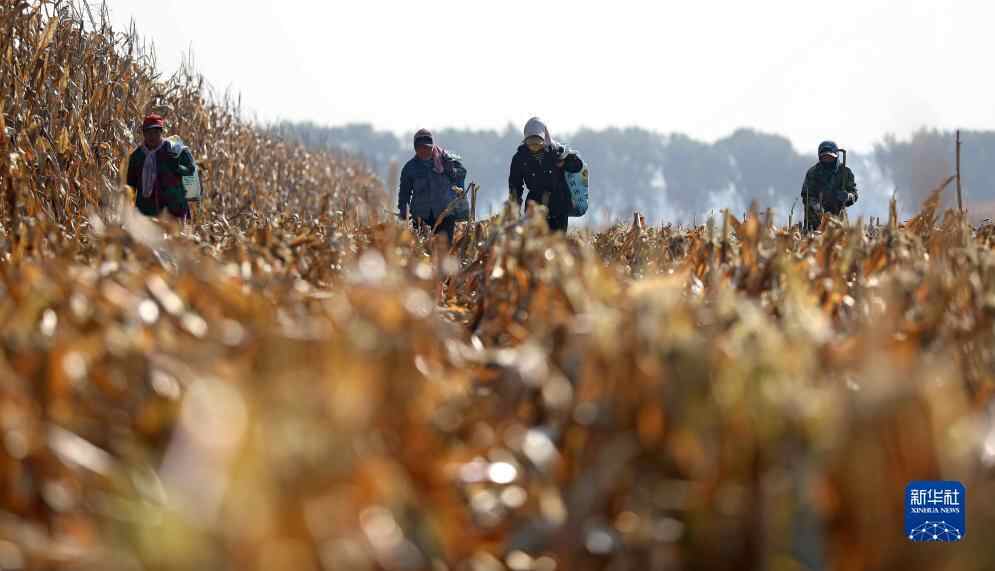 10月12日,几名村民在昌图县亮中桥镇永丰村的玉米田里进行农机收割后的“补漏”作业,确保颗粒归仓。