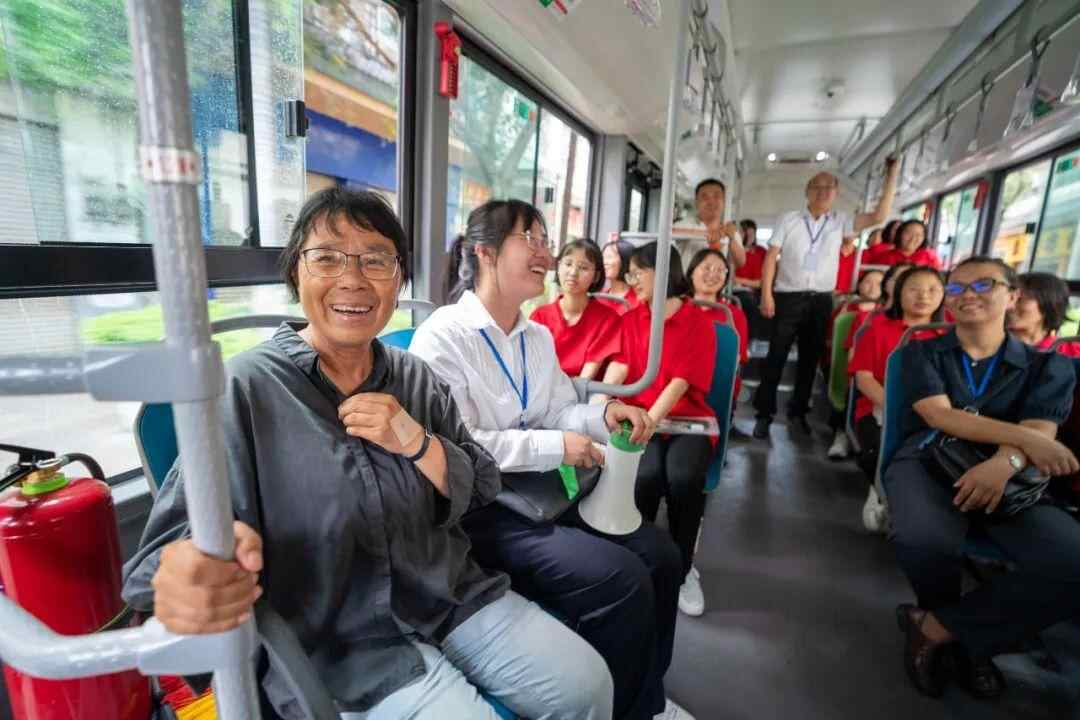 7点10分左右,张桂梅和孩子们坐上了大巴车,高一、高二的学妹们唱歌送行。