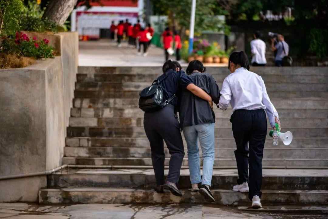 她赶紧让同事拿来喇叭,召集孩子们回校,“我的姑娘们怎么还没出来呀”。张桂梅不时向考场方向看去。