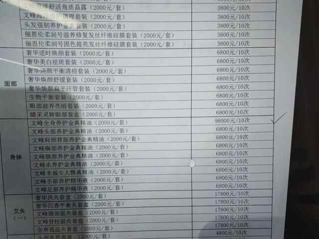 这项“文峰全身养护金典精油”10次服务高达9.8万元,另外收取2000元/套的产品费用,单次价格就达到1万元。是什么样的产品什么样的疗效,可以收取如此高的价格呢?收费是否又有依据或许可呢?