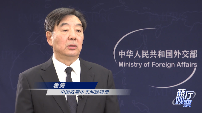 巴以新一轮冲突持续升级,就当前巴以局势,14日,中国政府中东问题特使翟隽接受总台《蓝厅观察》记者采访,阐述了中方立场。