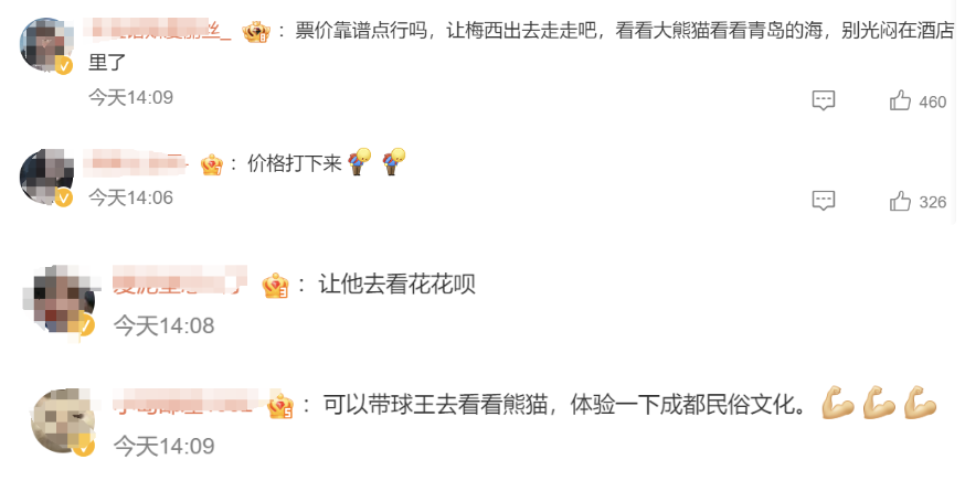 还有不少网友迫不及待给梅西安排青岛、成都的行程↓↓