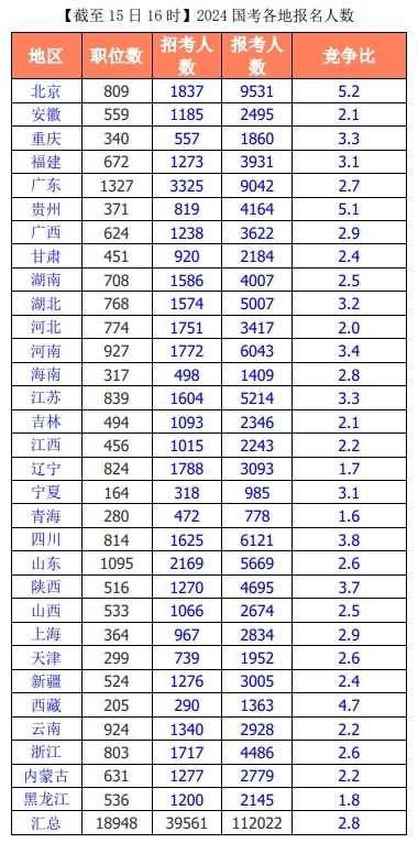 10月15日8时,2024年国考报名入口正式开通。2024年国考再度扩招,给广大学子们带来佳音,激发了大家参与的极大热情。据统计,截至10月15日16时,已经有112022人提交报名申请,平均报录比为2.8:1。有14322个职位接收到来自考生的申请,占总职位数的75.6%。