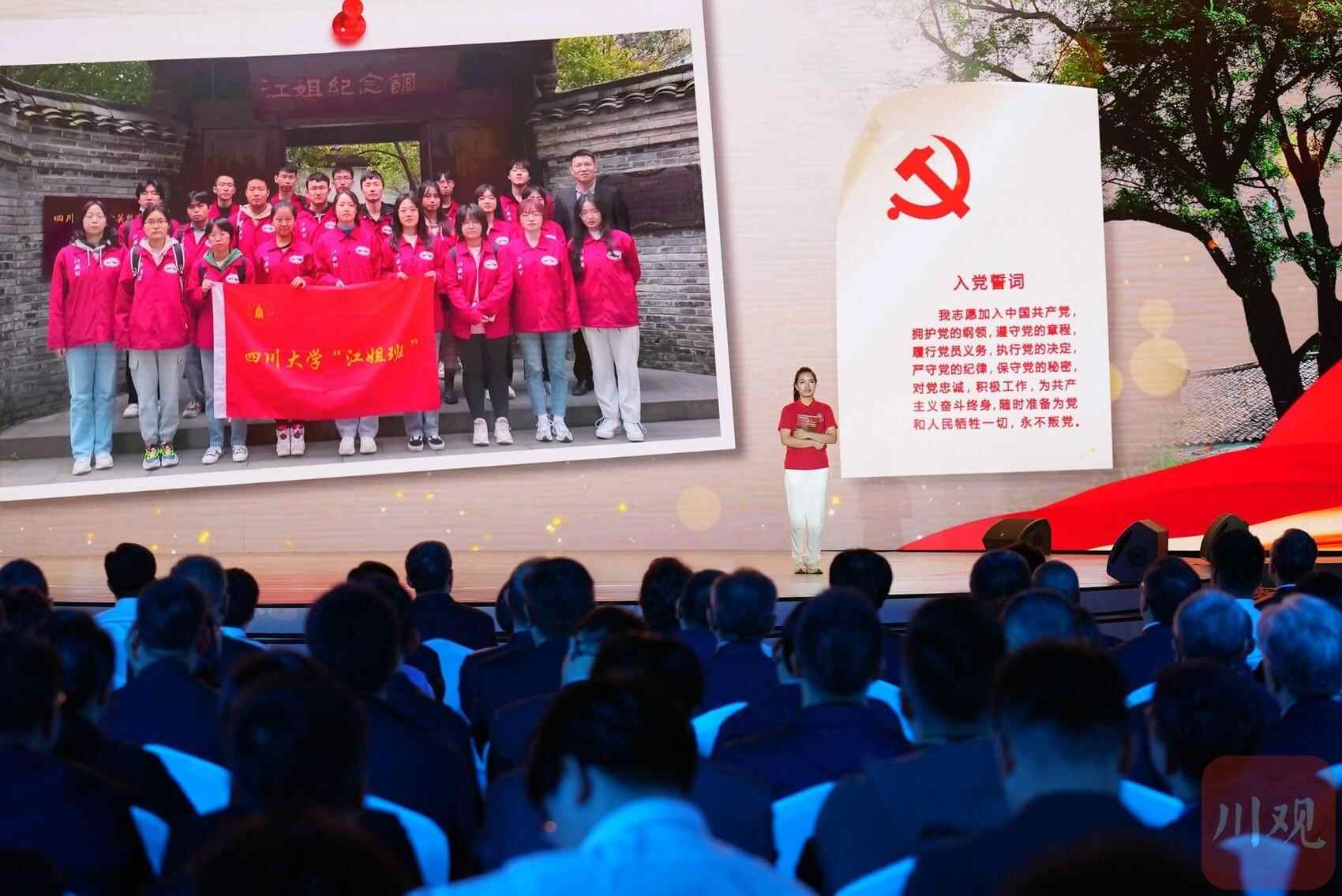 在 “锦水含章”篇章中,以歌曲《红梅赞》引入,《江姐在川大》编剧冉诗媛、四川大学“江姐班”学生代表张钰、“江姐纪念馆”设计者段禹农、第49届南丁格尔奖获得者蒋艳和四川大学三星堆遗址考古队队长黎海超等结合工作学习实践,动情讲述传承江姐精神矢志报国、援外抗疫展现大爱、创新赋能文博考古故事,生动诠释红色传承、文脉赓续、人民至上。