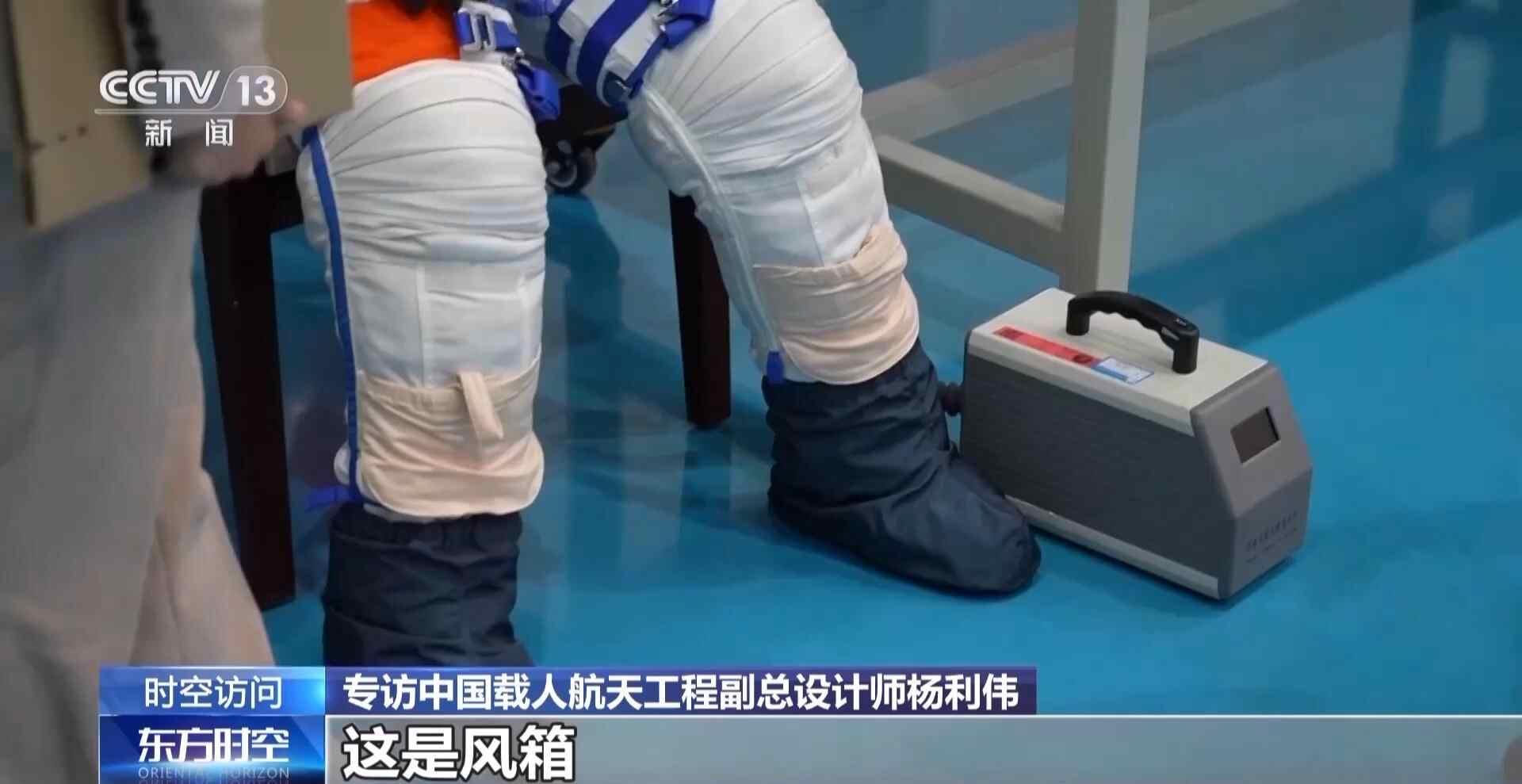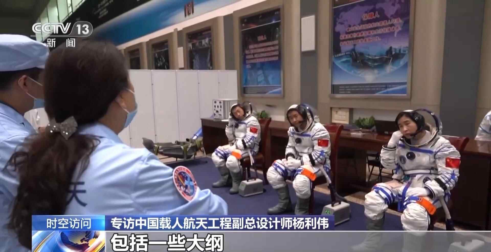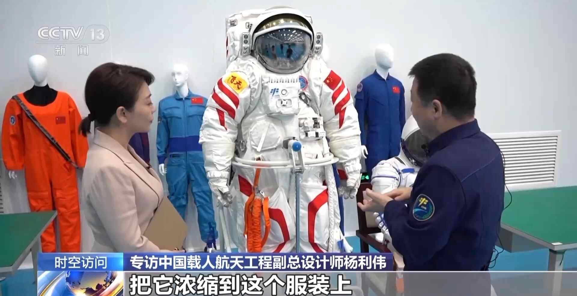 杨利伟:整个服装有120多公斤。这个服装比我们最初神舟七号飞行那会儿也做了很多改进,那个时候在场外暴露大概工作四到六个小时,现在我们是要大于八小时的工作时间。
