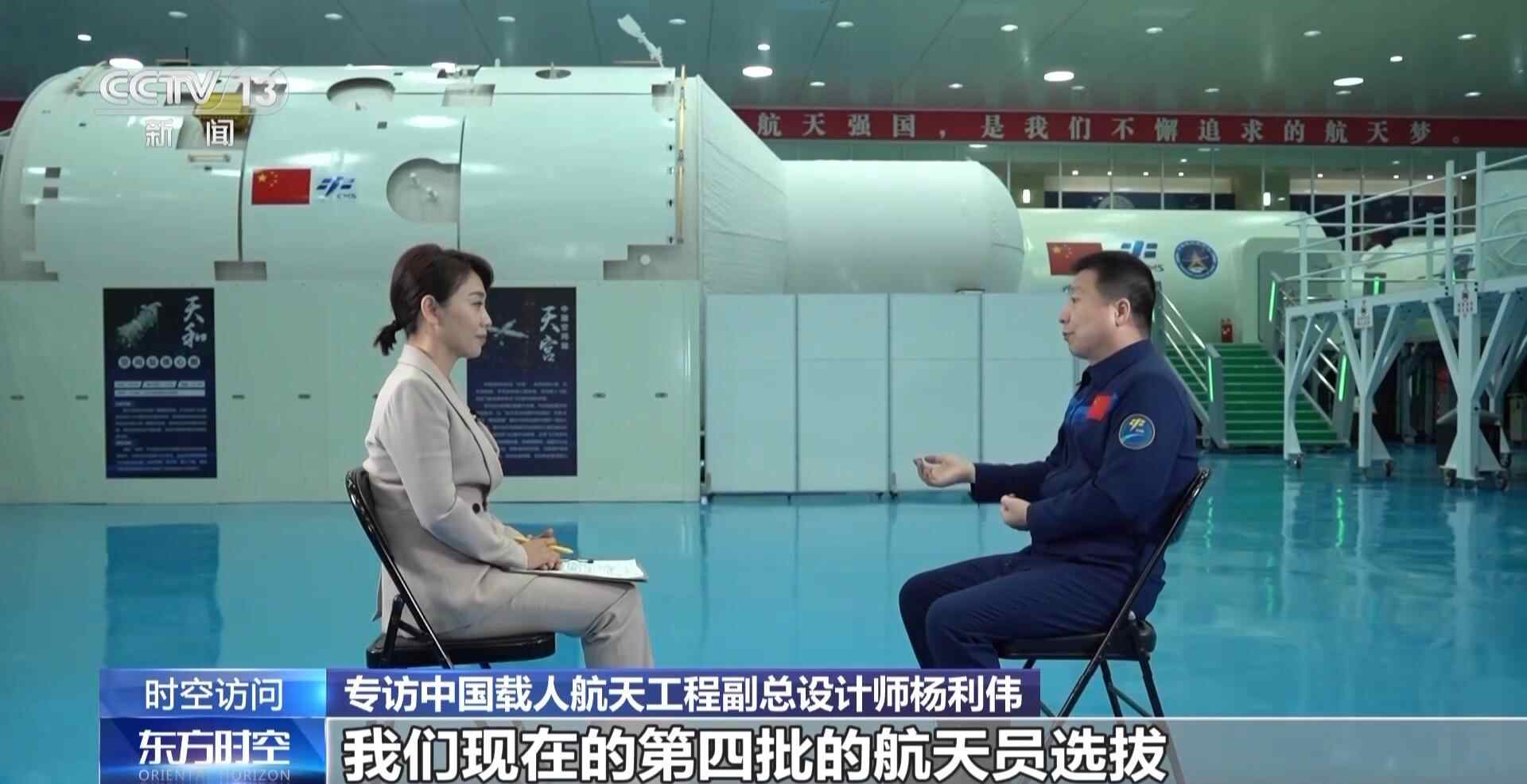 杨利伟:关键是我们现在手段更多了,包括我们的设施设备。第一批来的时候我们还去跳伞训练,现在我们到了第二批、第三批就不需要了。比如说我们的出舱,我们可以在水槽里边模拟失重。