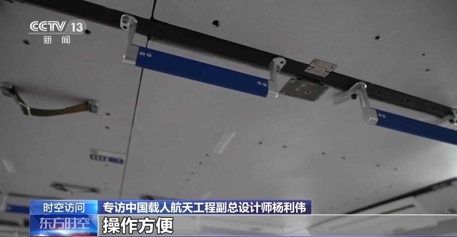 杨利伟:再往那边去,就是接着天舟。这里边有很多的把手,这都是为了航天员在里边工作操作方便,控制自己身体、姿态。