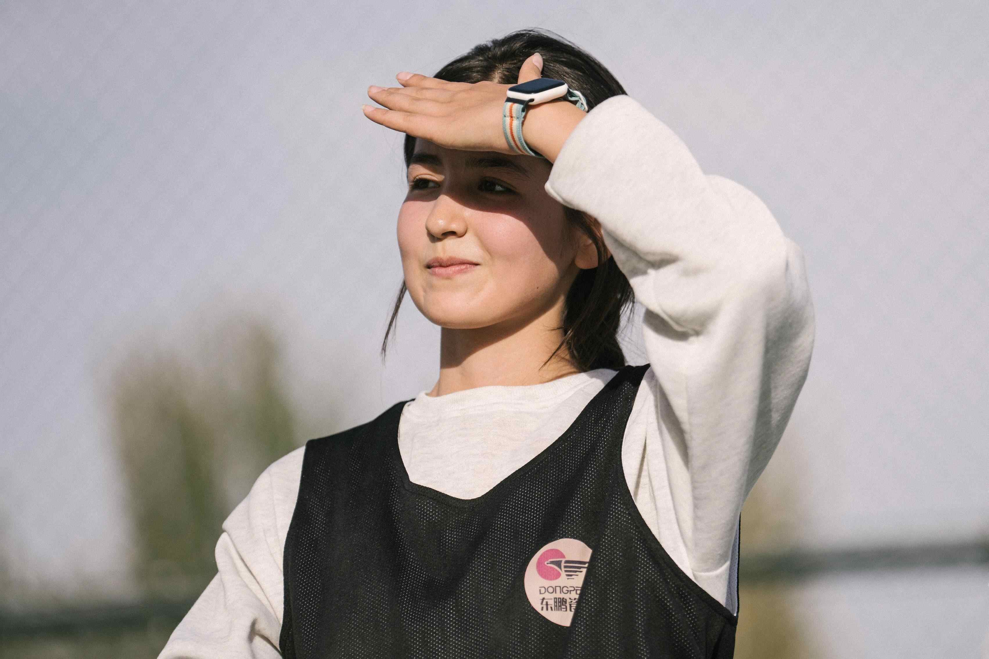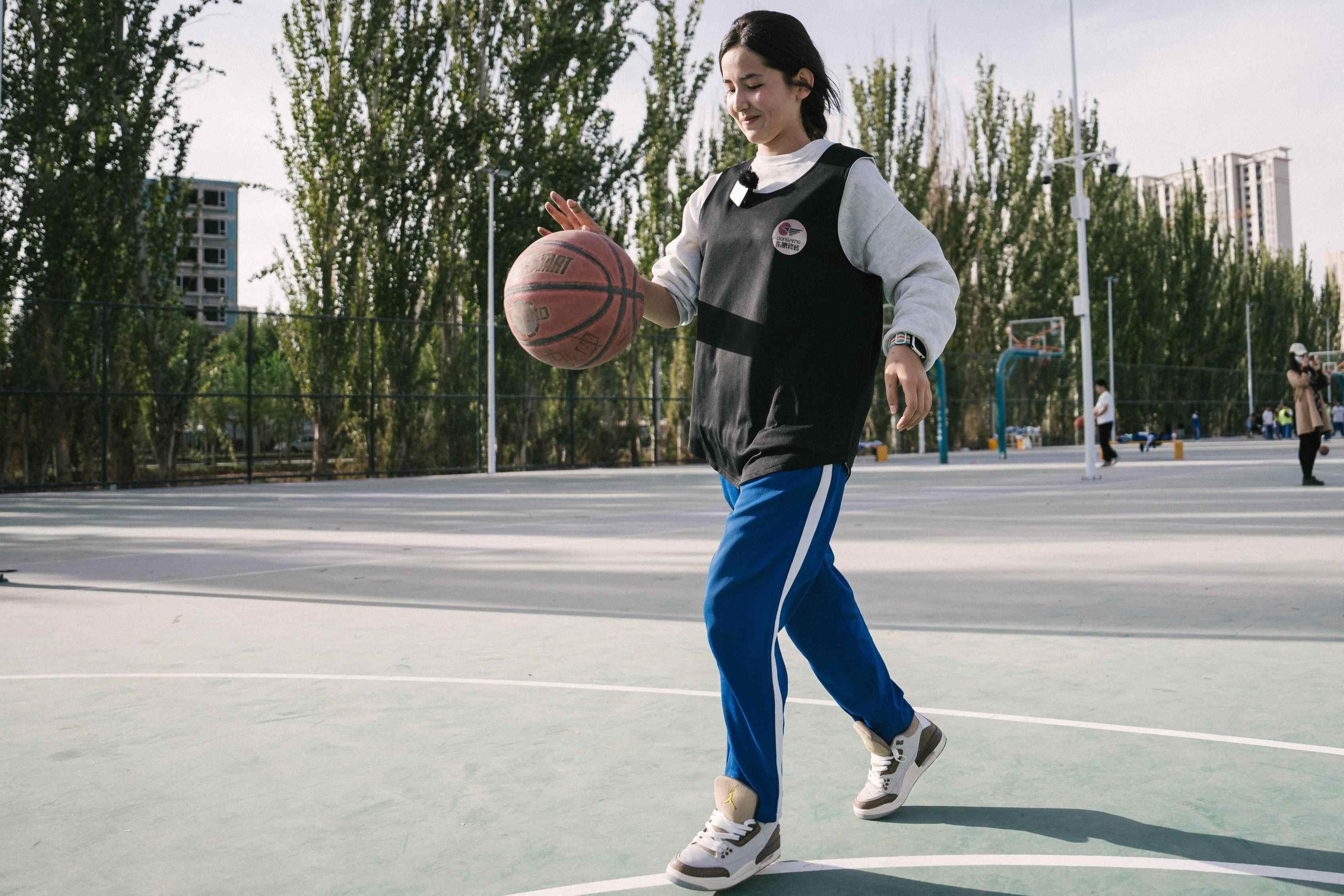 10月16日,记者来到喀什市篮球公园时,喀什第四中学学生苏麦耶·阿不里可木正在练习投篮。她今年高二,是学校女子篮球队的一员。