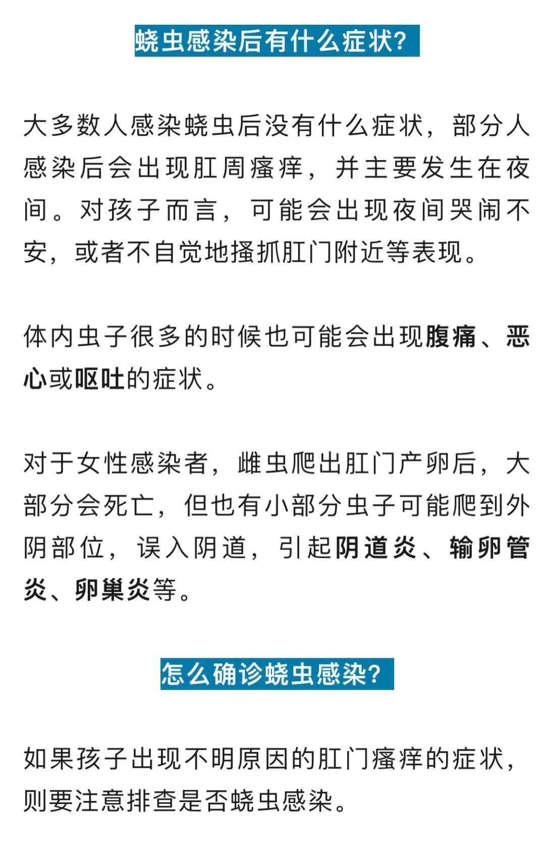 据悉,蛲虫,是一种白色细小、两端尖直的蠕形住肠线虫。蛲虫病是以引起肛门和会阴瘙痒为特征的一种肠道寄生虫病。本虫呈世界性分布,儿童感染较为普遍,远远高于成人,城市多于农村,特别是集体生活的儿童感染最多。