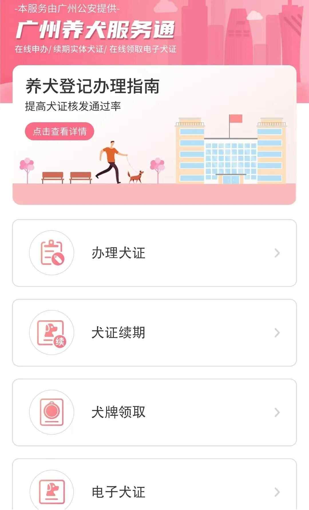 《广州市养犬管理条例》规定,养犬人应主动到合法的养犬登记受理委托机构为犬只办理登记手续,可通过支付宝“广州养犬服务通”小程序和微信“广州微警务”小程序进行犬主登记、续期。
