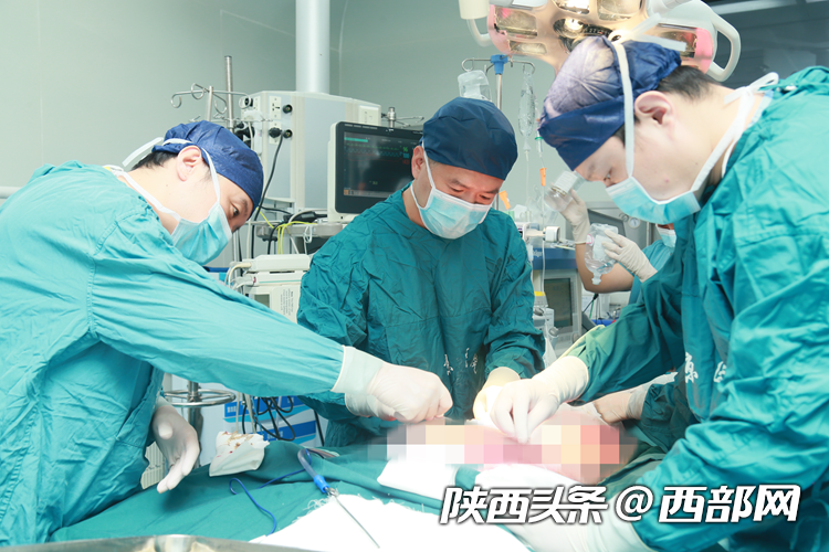 2023年7月3日,在空军军医大学西京医院烧伤与皮肤外科主任韩军涛的指导下,副主任杨薛康等主刀进行双上肢切痂、多基因编辑猪皮联合自体皮片移植手术,将自体皮片制成点状,散在移植到上肢烧伤创面,随后覆盖约6%体表面积的基因编辑猪皮。