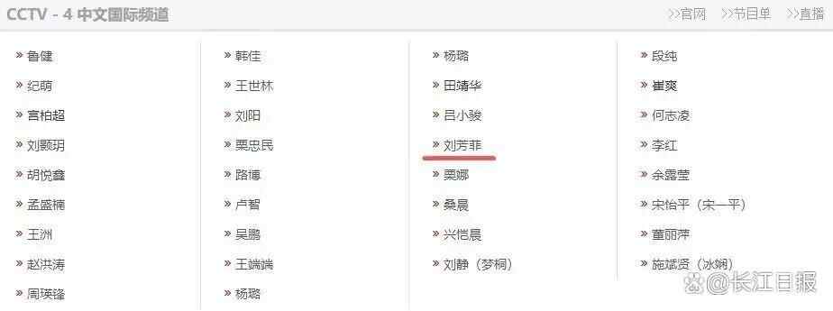 10月19日,刘芳菲已不再担任央视主持人一事受到舆论关注。据央视网近日更新的“央视主持人大全”显示,除了日前已宣布离职的李思思不再担任CCTV-3综艺频道主持人外,刘芳菲也已退出CCTV-4中文国际频道主持人行列。