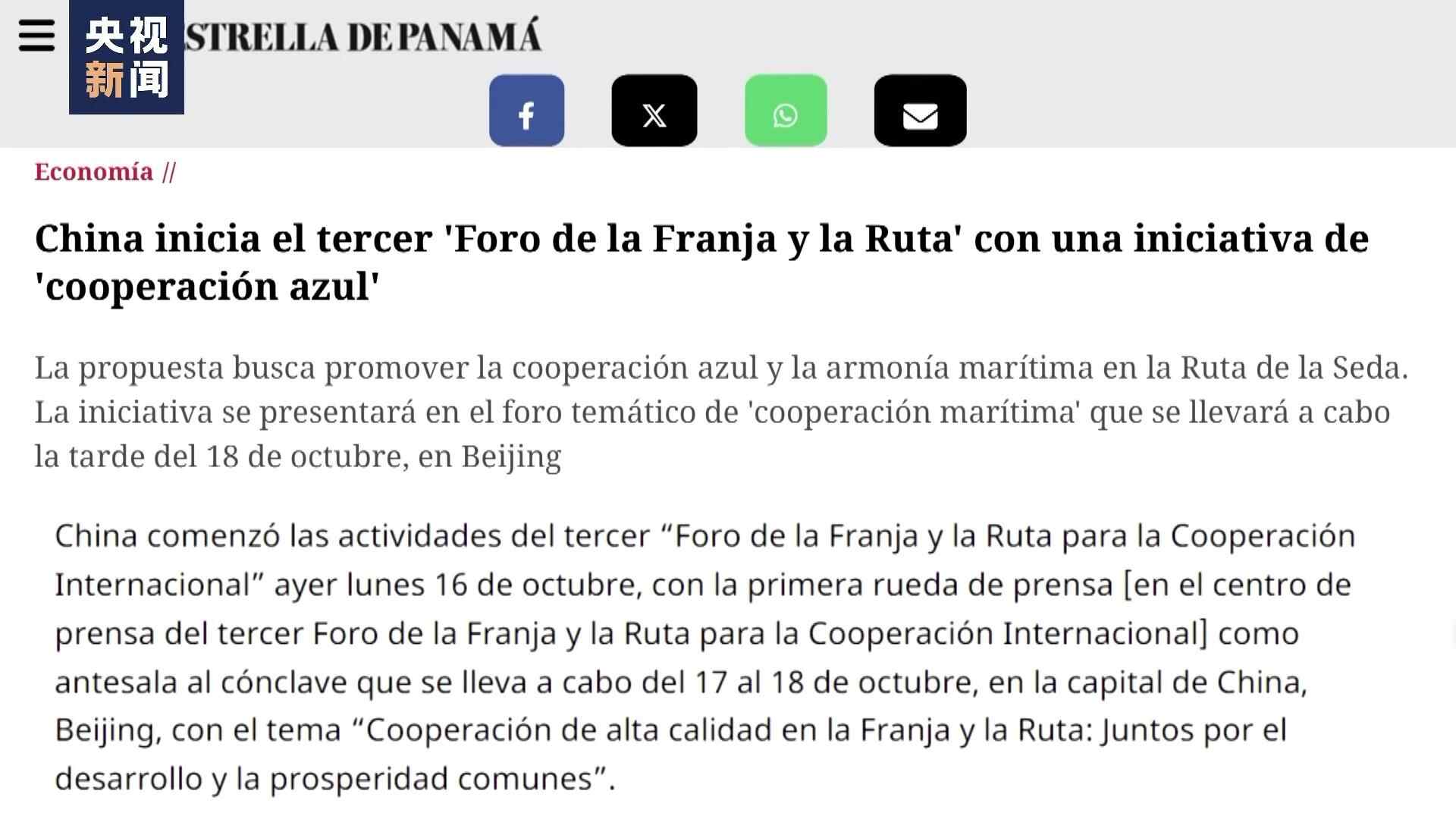 第三届“一带一路”国际合作高峰论坛也受到多国主流媒体关注。巴拿马历史最悠久,全国发行量最大的日报之一《巴拿马星报》刊发了主题报道,聚焦高峰论坛发布的《“一带一路”蓝色合作倡议》,并评论称这一倡议体现了中国对于高质量推进“一带一路”海洋合作的高度重视。