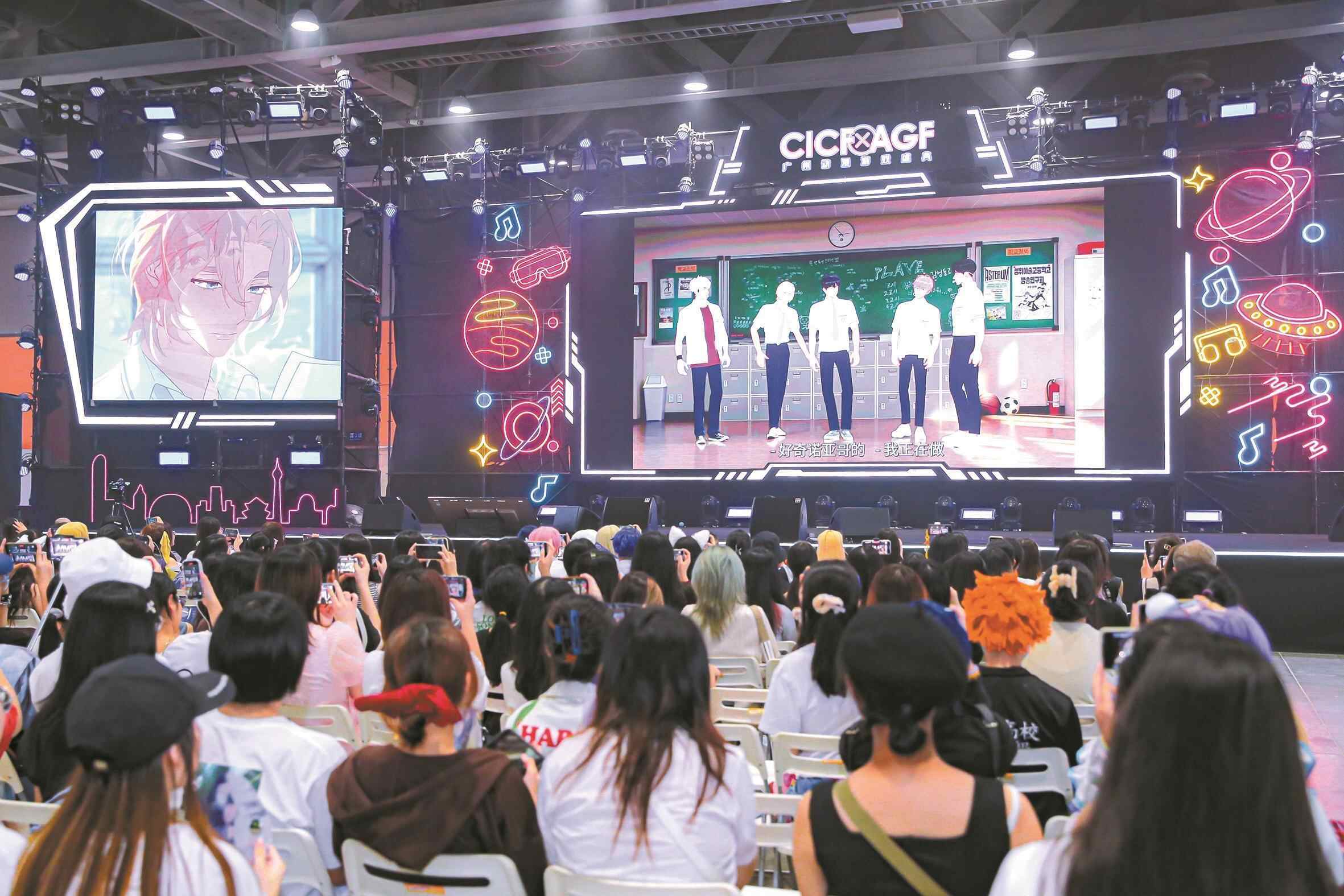 10月初,在人潮汹涌的CICF×AGF广州动漫游戏盛典现场,舞台屏幕上空降了来自韩国的虚拟偶像组合PLAVE。与人类不同,他们仿佛从韩国漫画中走出来,顶着帅气完美的“二次元”面孔,与舞台下早已热烈澎湃的粉丝打招呼,并演唱了《月亮代表我的心》等经典歌曲片段,在现场掀起一阵又一阵的欢呼热浪。