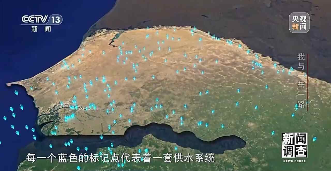 每一个蓝色的标记点,代表着一套供水系统。如今,塞内加尔251套供水系统已全部建成,不仅解决了当地七分之一人口的吃水用水难问题,也给经济发展带来新的机遇。