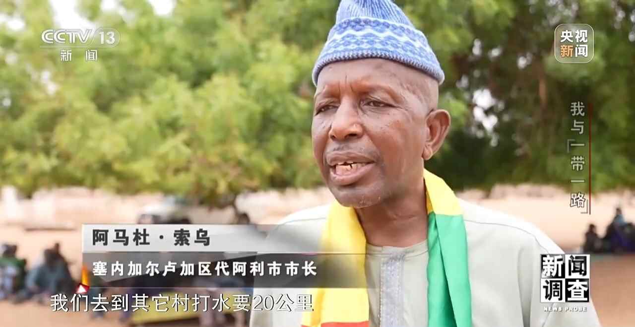 塞内加尔卢加区代阿利市市长 阿马杜·索乌:我们这个戴利村是没有水的,我们去到其他村打水要20公里。之前你们来到这个村庄看不到当地人,因为当地人都出去打水了。听说中国人要来这里打井的时候,我们周边的村民都非常高兴。