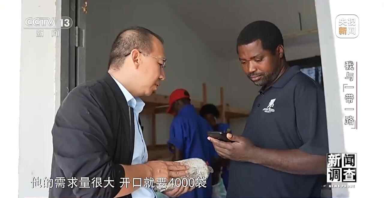 这名男子是从首都基加利来到这里的,想找中国专家购买生产蘑菇的菌袋。他的需求量很大,开口就要4000袋。