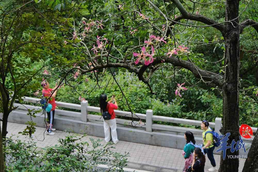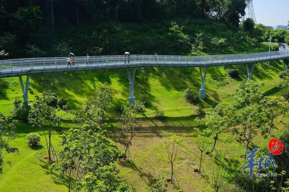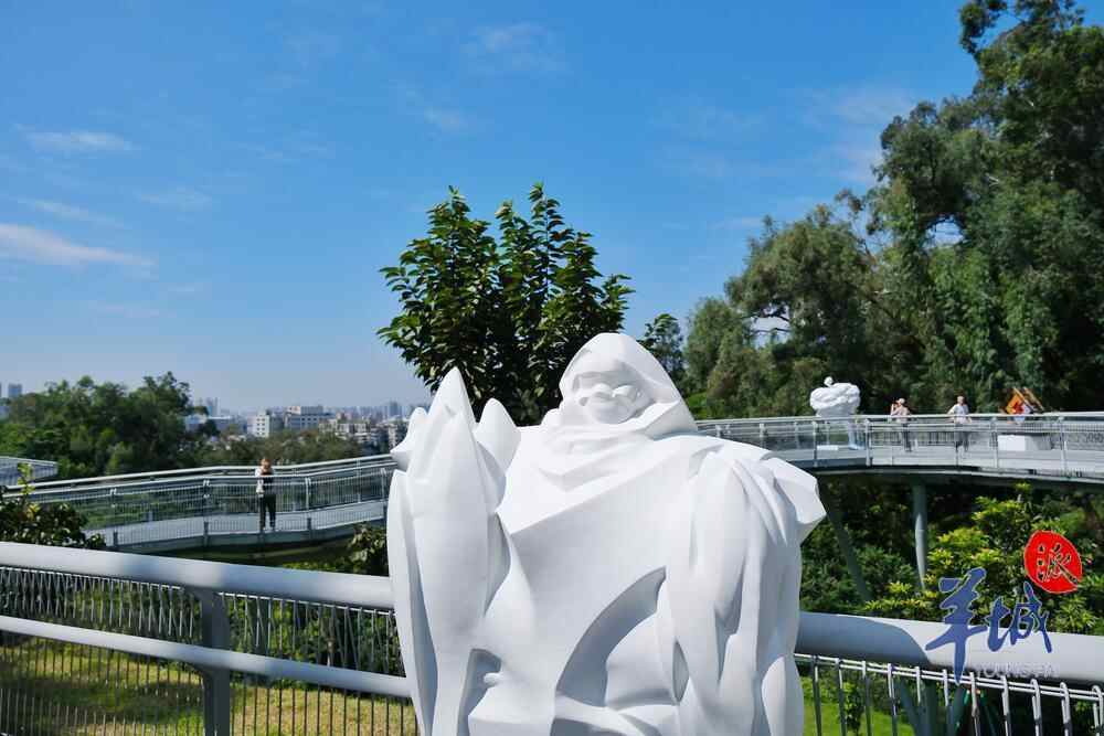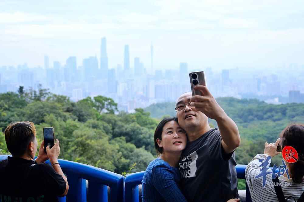 除了热门登高点,有部分市民选择到花果山的云道,欣赏蓝天白云衬托下的羊城美景。