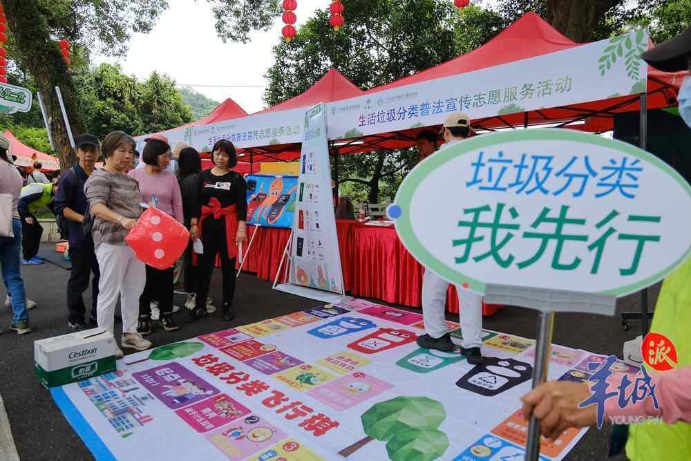 垃圾分类、艾灸体验、领祝福书签、学习急救知识……在白云山山顶广场,多个互动集市摊位受到市民热捧,市民排长龙。