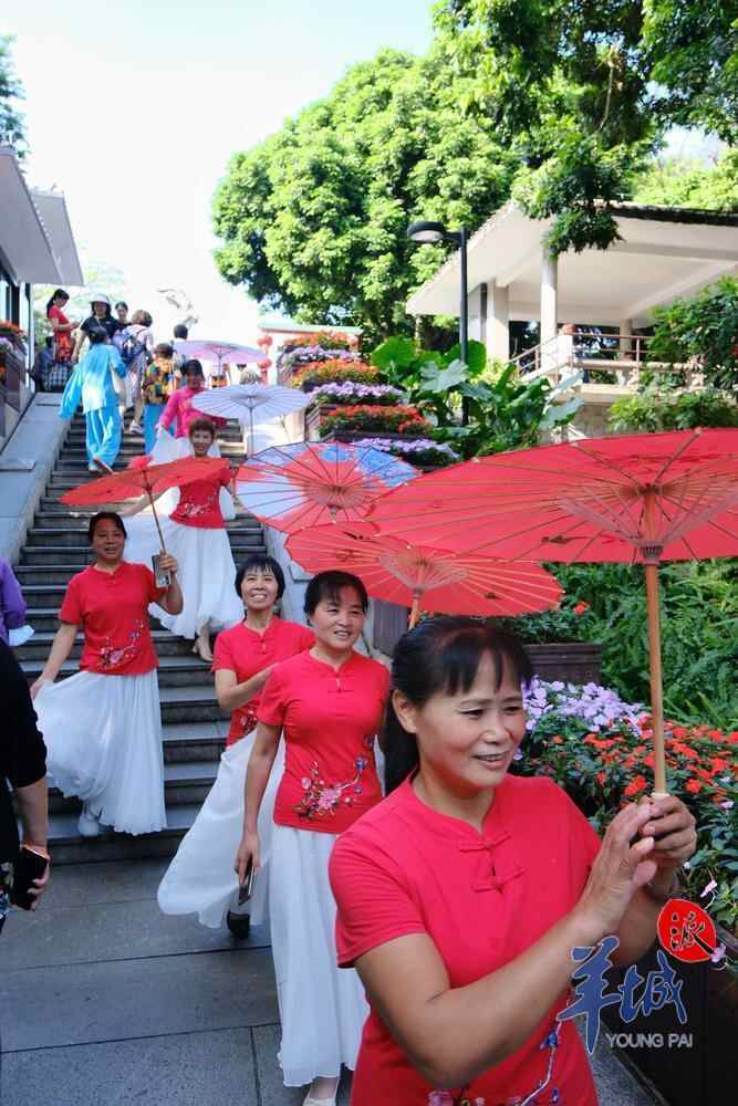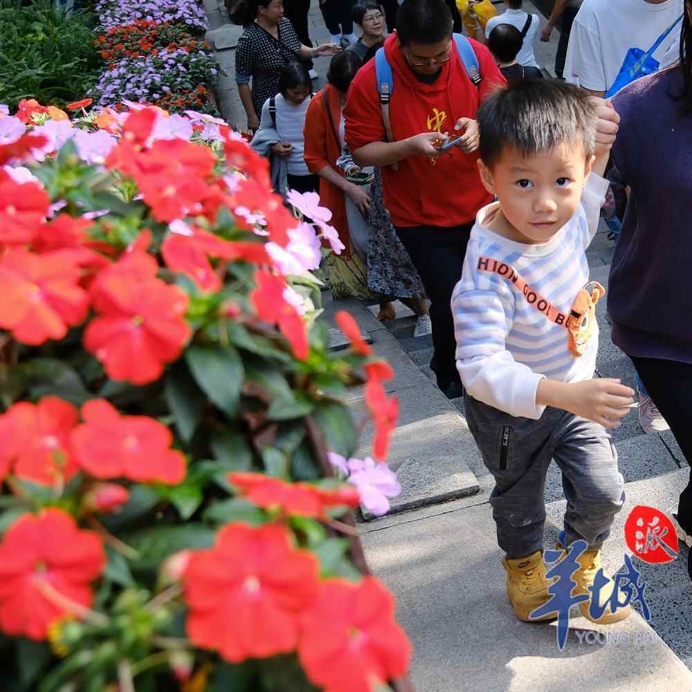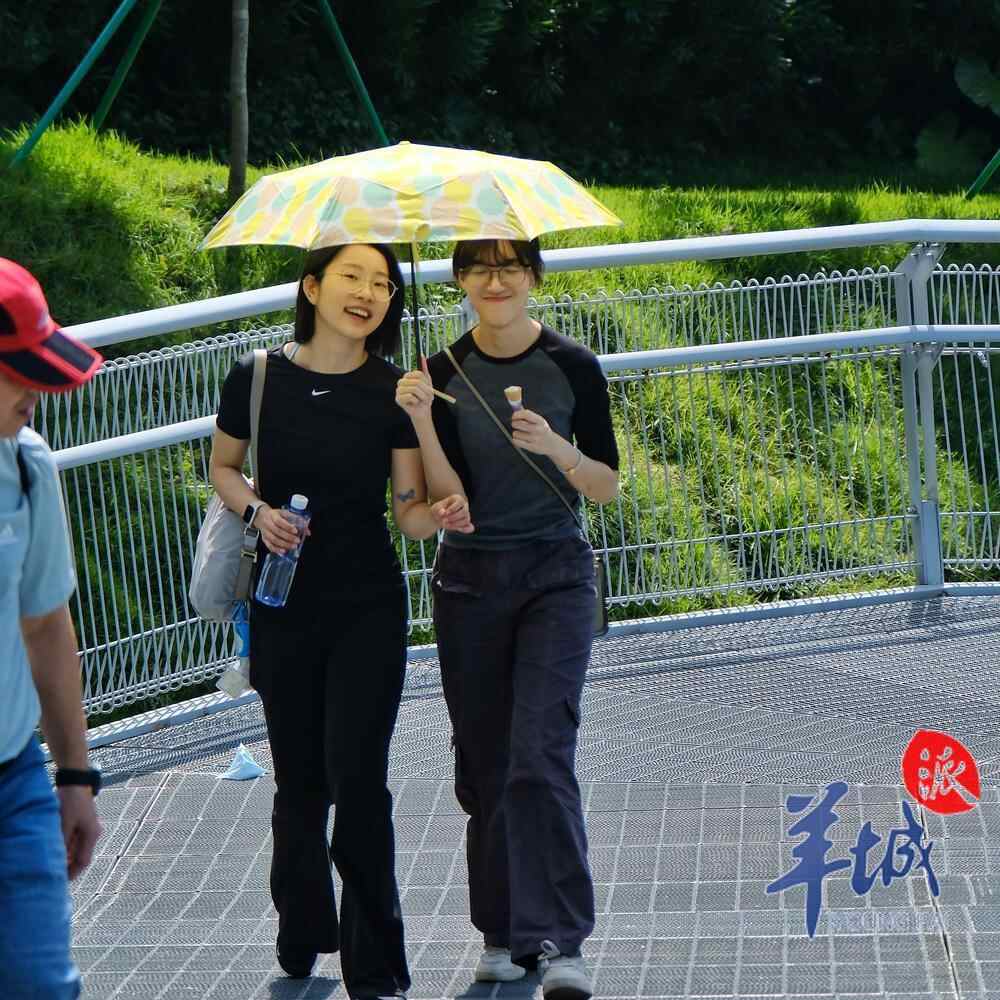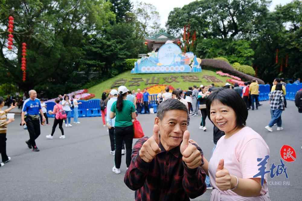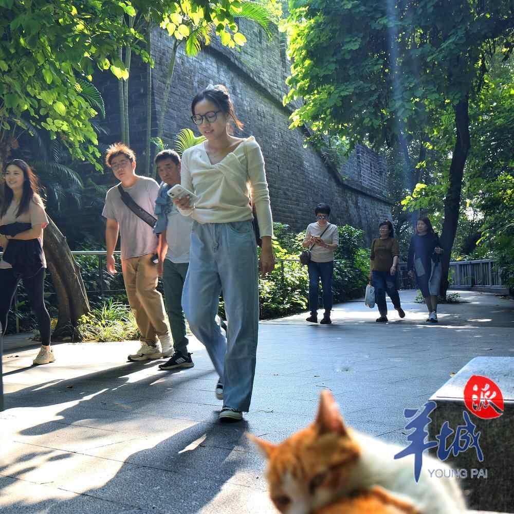 在越秀区的登高点,越秀山游人如织,市民登上百步梯“打卡”中山纪念碑、四方炮台、五羊雕像等景点。市民黄小姐说:“家距离越秀山近,我特意在重阳节约上闺蜜,相聚登山。”