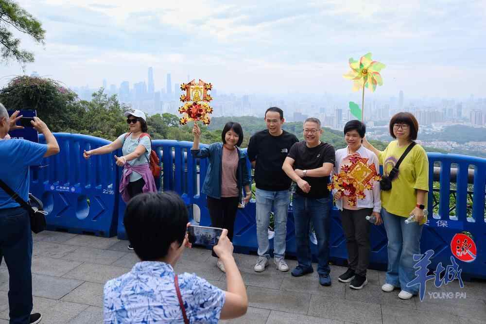 手持风车拍照的何阿姨是白云山的常客,在重阳节当天,她特意买了一个风车登山祈福,“重阳节风和日丽,适合登山赏美景,希望生活如风车上写的祝福:身体健康、阖家安康。”
