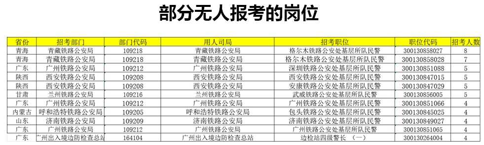 截至目前依然有178个岗位无人报考,比昨日减少了48个岗位,刘有珍表示,这说明报名后期越来越多的岗位被发掘。前十大岗位中基本都是铁路公安岗位,由于铁路公安工作地点大部分都是在偏远地区,离市中心远,交通并不便利,并且公安岗位在考试阶段不但要参加公共科目笔试,还需参加专业科目笔试,在面试阶段参加体能测试,对于考生来说备考压力十分的大。