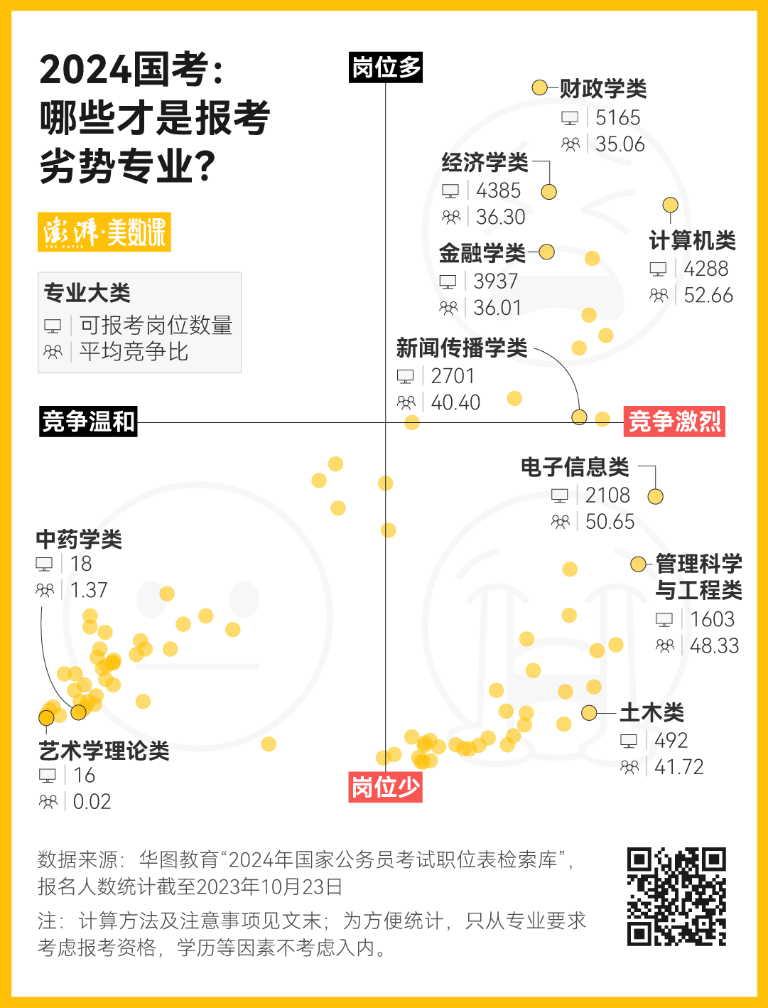 注:1.各岗位专业要求写法不一,已尽可能做到近似匹配,但不免仍存在少量误差,以实际报考情况为准。2.部分岗位要求为具体专业,而非专业大类,为方便统计,皆以专业大类进行计算。