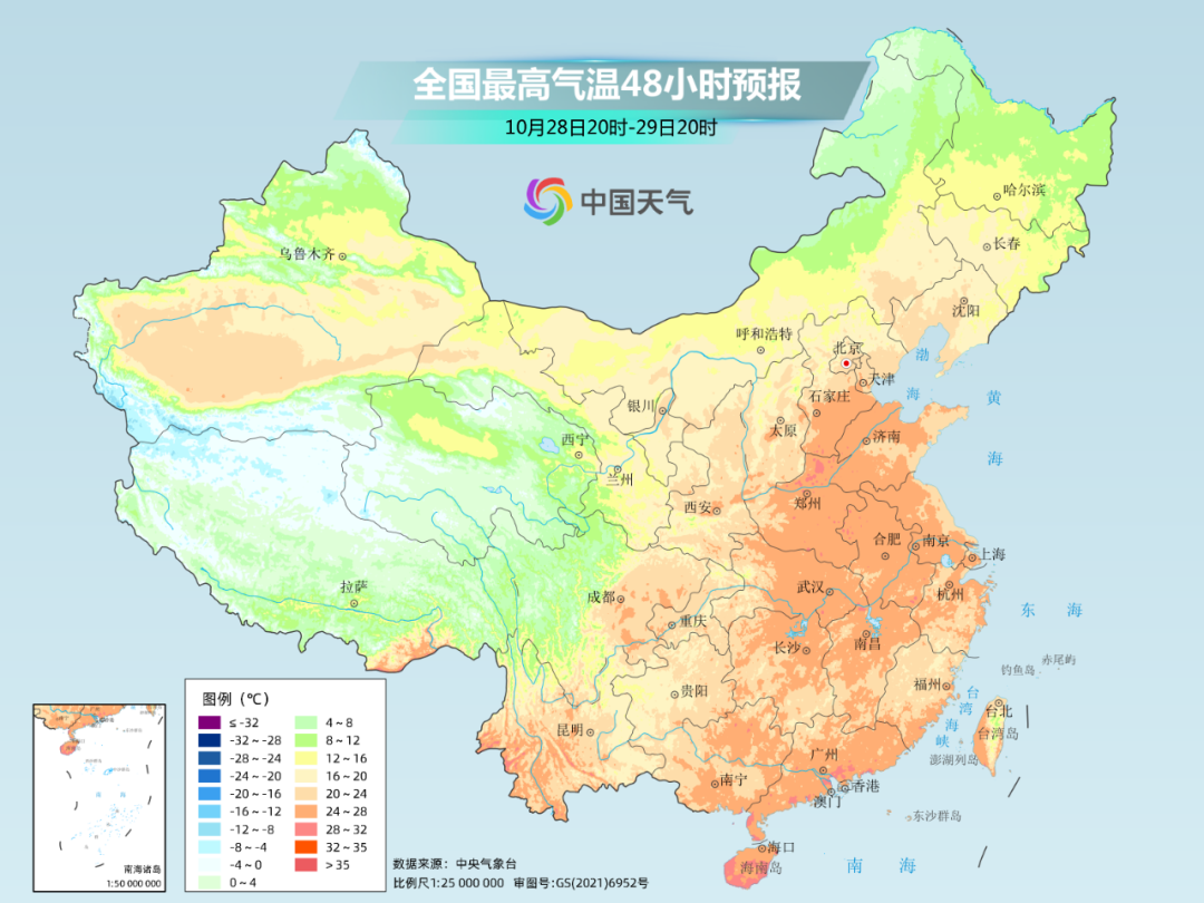 本周末中东部大部都是降水稀少的天气格局,而且近期冷空气势力较弱,气温一天比一天暖。北方大部最高气温都在20℃以上,黄淮、江淮等一些地方最高气温在25℃以上,还是很适合来享受秋天的。