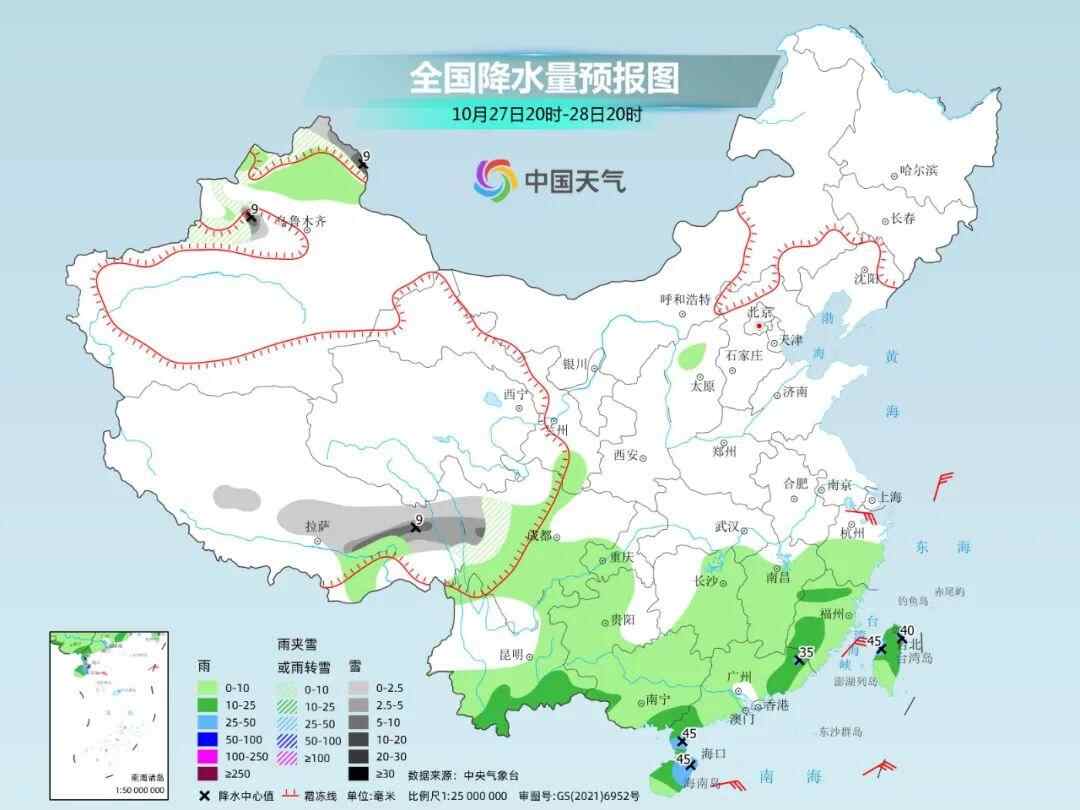 此外,周末在新疆北部、西藏东部、川西高原等地部分地区也会有雨雪天气。其中,周日在新疆北疆北部的部分地区有小到中雪或雨夹雪,局地大雪,大家外出时也要注意做好防滑措施。