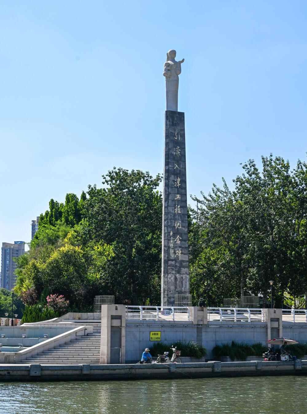 在天津三岔河口拍摄的引滦入津工程纪念碑(2023年8月29日摄)。新华社记者 孙凡越 摄