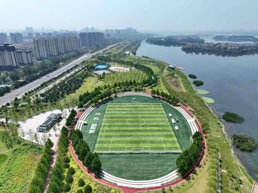 河北省迁安市滦河沿岸风光(2023年7月7日摄,无人机照片)。新华社记者 牟宇 摄