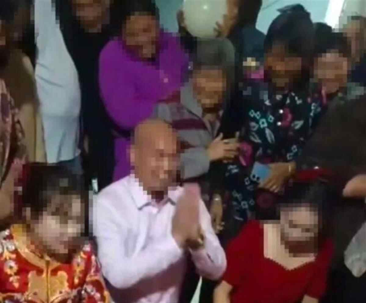 现场视频显示,一名男子与两名女子正在举行拜堂仪式。另一段视频中,有两位身穿红色礼服的女子坐在不同的位置,视频中有人介绍“这是大夫人,这是老二”。