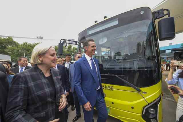 10月24日,纽森来到深圳巴士集团安托山场站,了解深圳公交电动化发展情况,并试乘了一辆比亚迪电动车,体验了“原地掉头”功能。当日,广东与加州相关部门签署深化绿色发展合作谅解备忘录,双方约定在碳市场和碳交易、气候投融资等领域加强合作。