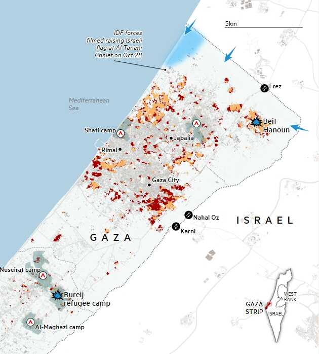 与此同时,以色列北部的局势也在升级。以色列国防军10月28日袭击了黎巴嫩南部的多个真主党阵地。黎巴嫩边境的小规模冲突已持续数周,外界担心,随着以色列国防军继续在加沙南部地带与哈马斯作战,真主党可能会开辟北部的第二战线。
