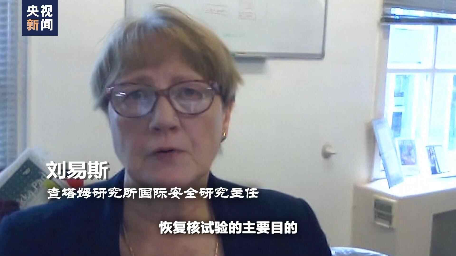 查塔姆研究所国际安全研究主任 刘易斯:恢复核试验的主要目的是开发新的核武器,所以这将是危险的。