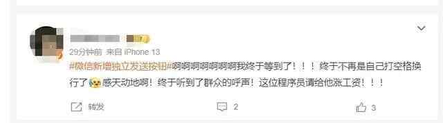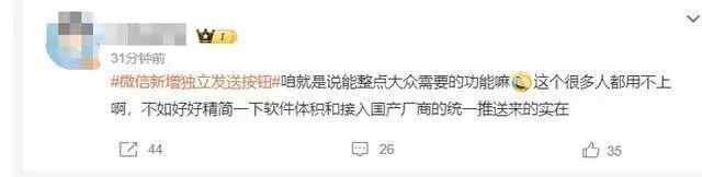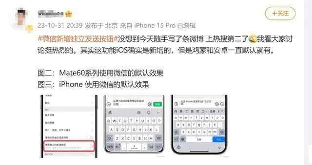 昨天,“微信新增独立发送按钮”冲上热搜。