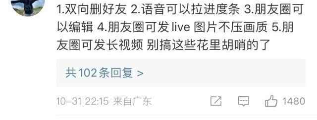 还有网友表示期待更多的功能更新,“语音进度条、朋友圈可以图片评论更值得做啊”“我需要朋友圈可编辑”“微信能不能别再占几十个G了啊”……