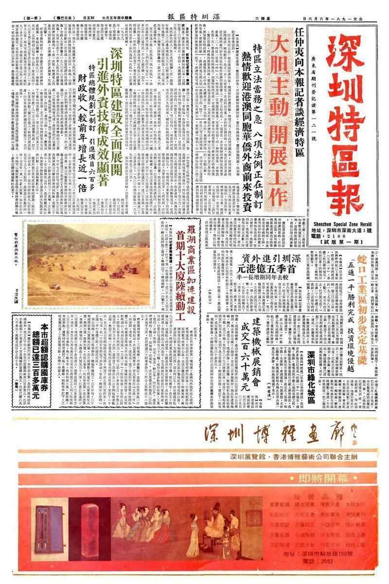 1981年6月6日《深圳特区报》试版第一期刊登了蛇口工业区相关报道。