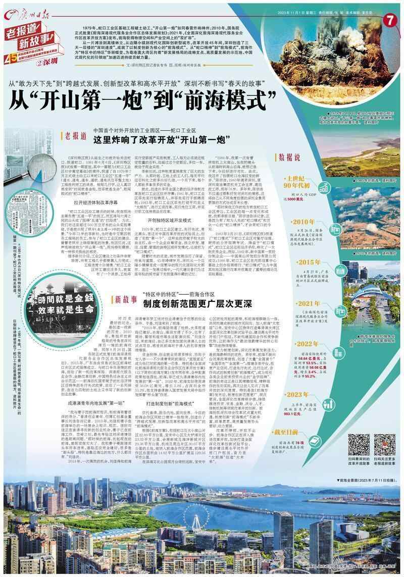 1979年,蛇口工业区基础工程破土动工,“开山第一炮”如同春雷炸响神州;2010年,国务院正式批复《前海深港现代服务业合作区总体发展规划》;2021年,《全面深化前海深港现代服务业合作区改革开放方案》发布,前海获得物理空间和产业空间上的“双扩容”。