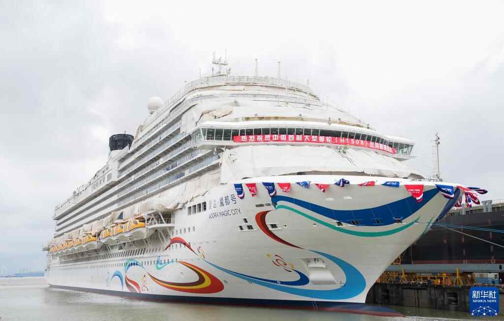 白色涂装、流线型船体、身系“敦煌飞天彩带”的首艘国产大型邮轮,据悉取名为“爱达·魔都号”,寓意“从上海出发,爱达世界”。