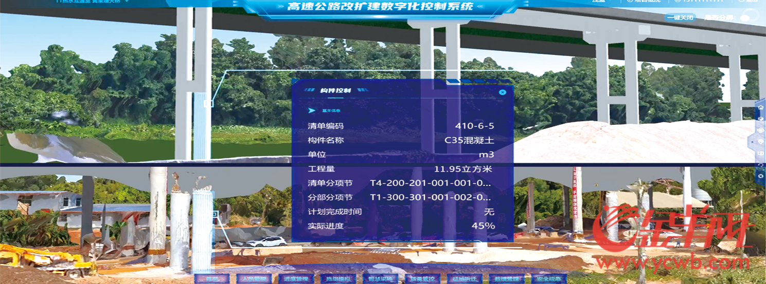 11月3日,在长深高速河惠段改扩建项目施工现场上空,一架架特殊的无人机平稳穿过高空,并将监测到的“情报”传输到项目数字化管理系统,在后台大型显示屏上,护栏错位、路面裂缝处等随即被精准“锁定”。