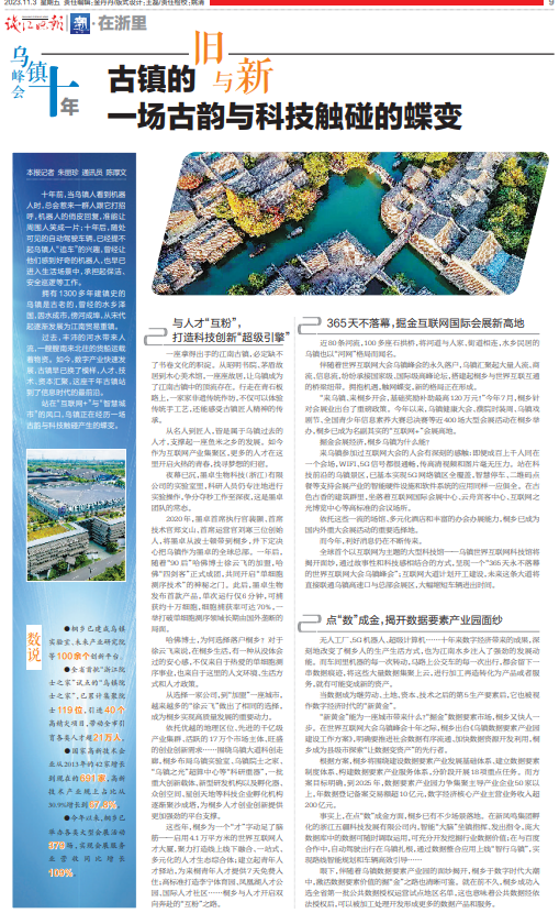 过去,丰沛的河水带来人流,一艘艘南来北往的货船运载着物资。如今,数字产业快速发展,古镇早已换了模样,人才、技术、资本汇聚,这座千年古镇站到了信息时代的最前沿。