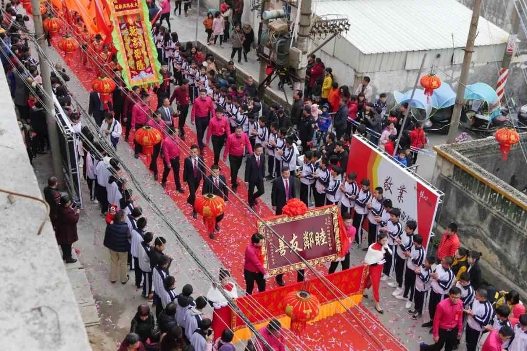 当天,在槎桥村,记者看到到处一片喜庆洋洋,杨氏宗祠装扮得红红火火,里里外外挤满了统一着装的村民。