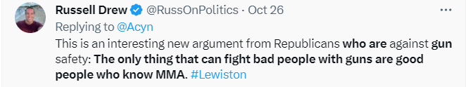 美国网友布莱恩·泰勒(Brian Tyler)在社交平台上发文称:“共和党阻止大规模枪击事件的新计划:空手道阻挡AR-15。” 另一位阿玛亚·迪金斯博士(Amaya Deakins)写道“是的,他训练自己的身体来挡子弹”,随后加上了一系列大笑的表情符号。拉塞尔·德鲁(Russell Drew)则表示:“这是反对枪支安全的共和党人提出的一个有趣的新论点:对抗手持枪支坏人的唯一法宝便是懂得综合格斗的好人。”