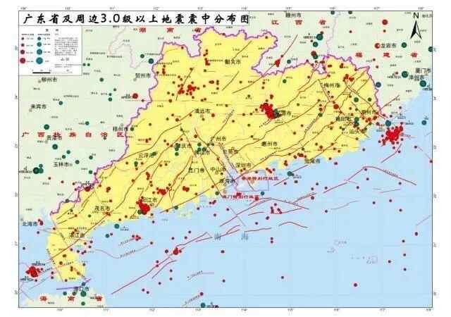 广东地处东南沿海地震带的中段,全省18个沿海地级市大都位于地震活动相对活跃的区域。