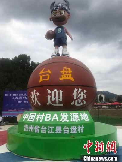 图为台盘村“村BA”吉祥物雕塑。中新网记者张伟 摄