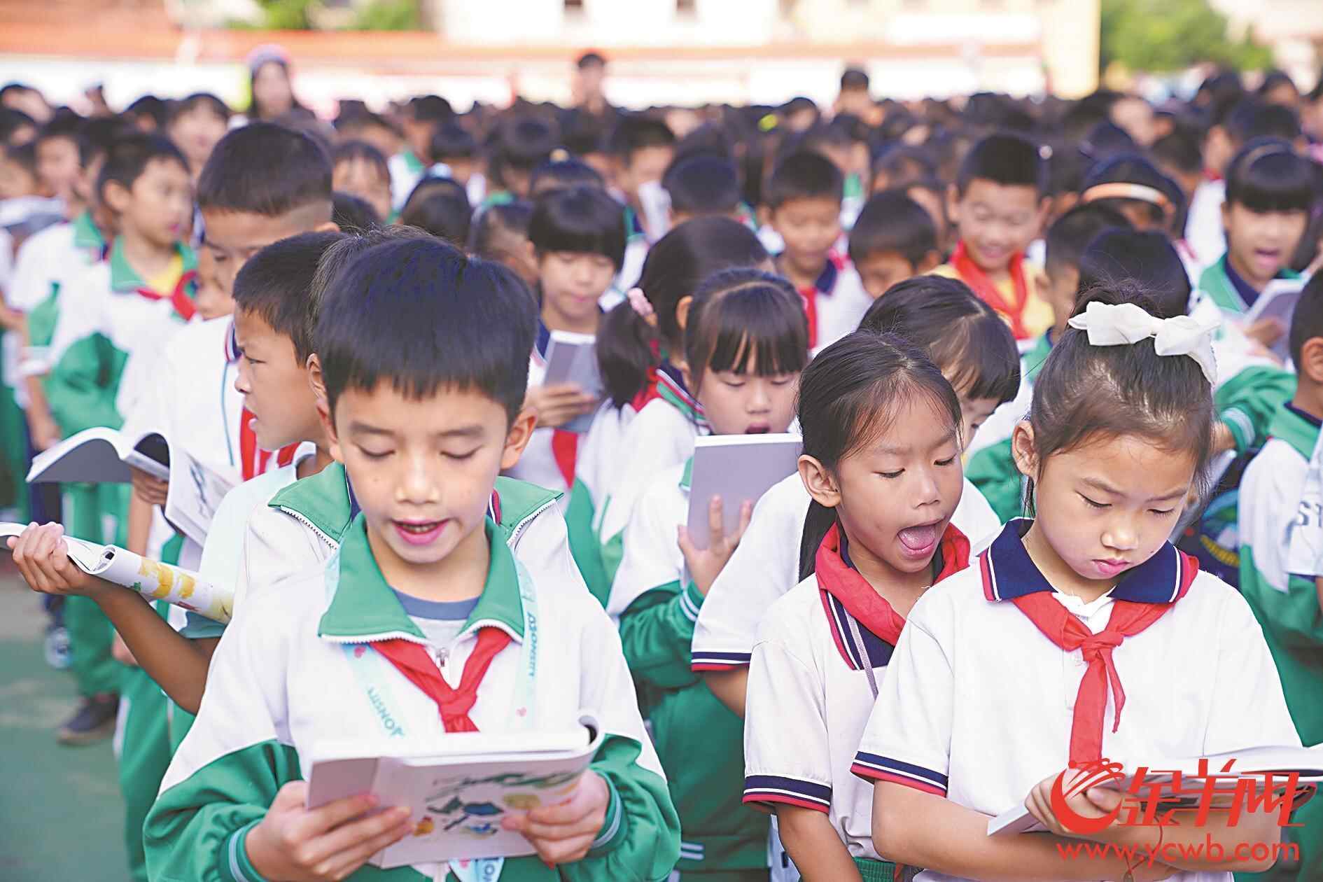 记者走进翁城镇中心小学看到,早上8时,近3000名学生在老师们的带领下齐声朗读诗歌《1号粮仓的秘密》,孩子们的朗诵声从四周响起,稚嫩而响亮。