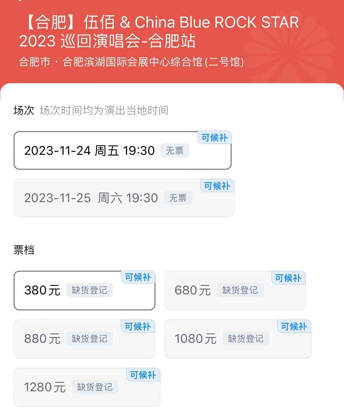 11月6日,不少消费者发现大麦网推出了门票候补功能,该功能并非针对所有演出,对于可候补的演出,平台会打上标识。比如,伍佰2023巡回演唱会合肥站门票页面就打上了“可候补”标识。