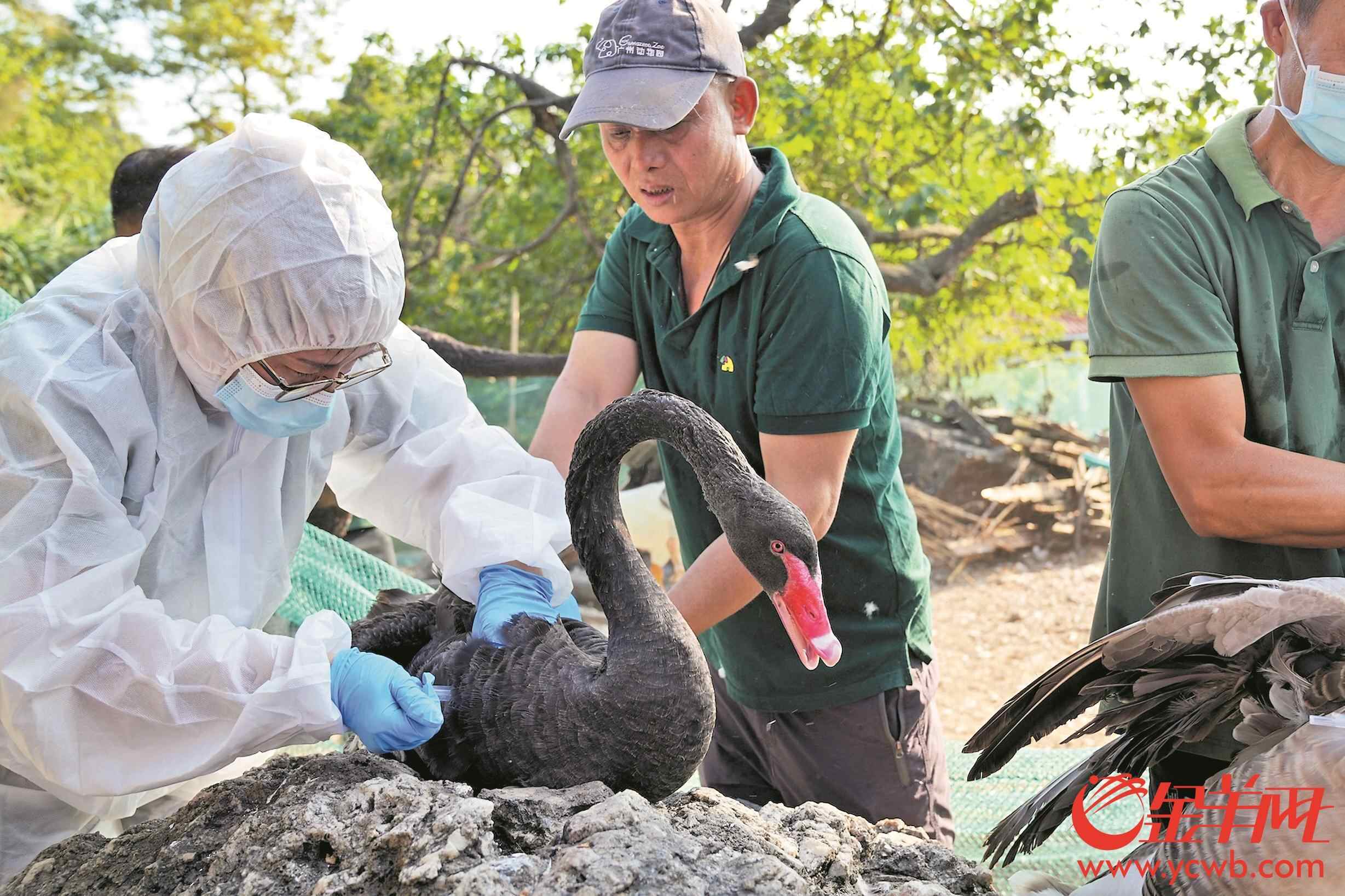 “春季和秋冬季是禽类疾病高发期。为预防秋冬季禽类疾病,我们会在禽鸟的肩或腿的肌肉部位注射高致病性禽流感疫苗,既是保障禽鸟健康,也是保障市民游客健康。”广州动物园兽医院负责人陈绚姣表示,6日当天,需要先对三大湖的禽鸟,包括丹顶鹤、白枕鹤、火烈鸟、鹈鹕、黑颈天鹅、大天鹅、鸳鸯等珍禽在内的24种、约370只禽鸟进行禽流感疫苗接种。