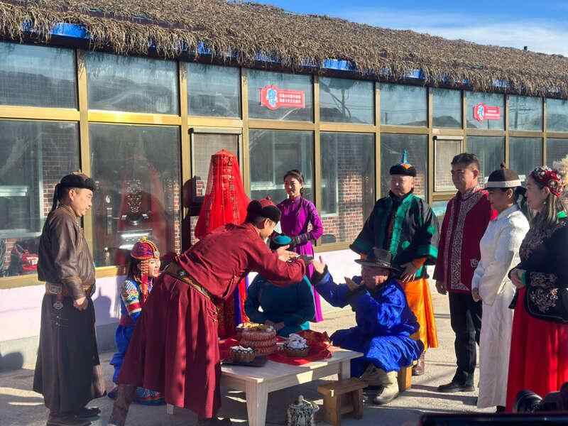 11月6日,在蒙古族婚礼上,新娘新郎载歌载舞欢迎亲朋好友。中青报·中青网记者 石佳/摄